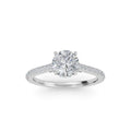This Zack and Elle exclusive custom ring features a stunning micropavé band complete with a hidden halo and a diamond adorned cathedral for added sparkle.