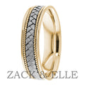 6mm three strand flat braid wedding band with shiny/high polished finish. Its accented with ropes on both sides and braid is satin finish with shiny/high polish edges. This ring is comfort fit and can be created with the different metal types listed below.