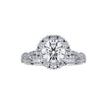 Antique inspired, this unique ring features a halo and twisted diamond band.