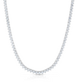 Stunning round brilliant earth mined diamond tennis necklace in 14k white gold set in a timeless four prong style design.