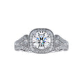 This antique inspired engagement ring features a delicate hand carved metal basket and milgrain details.