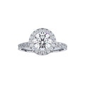 Intricately crafted for optimal sparkle, this engagement ring features a halo and diamond basket.